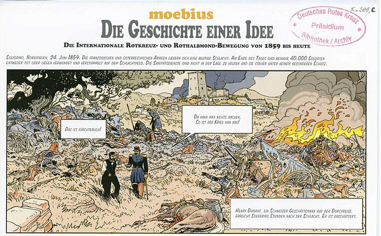 Im Sommer 1859 wird Henry Dunant, ein junger Kaufmann aus Genf, Zeuge der erschütternden Zustände nach der Schlacht bei Solferino, als Tausende verwundeter Soldaten mangels medizinischer Versorgung sterben. Drei Jahre später bringt er seine Erinnerungen daran zu Papier und ruft dazu auf, freiwillige Hilfsorganisationen zu gründen, die sich in Kriegen der verwundeten Soldaten annehmen. In der Schweiz findet er tatkräftige Unterstützer, und bald stoßen ihre Gedanken auch in anderen europäischen Ländern auf Widerhall. Auf zwei großen internationalen Konferenzen werden die Grundlagen für das Rote Kreuz und die Genfer Konvention geschaffen. Innerhalb weniger Jahre entwickelt sich diese humanitäre Initiative zu einer weltweiten Bewegung, ihre Mitarbeiterinnen und Mitarbeiter bewähren sich in einer Reihe von militärischen Auseinandersetzungen.